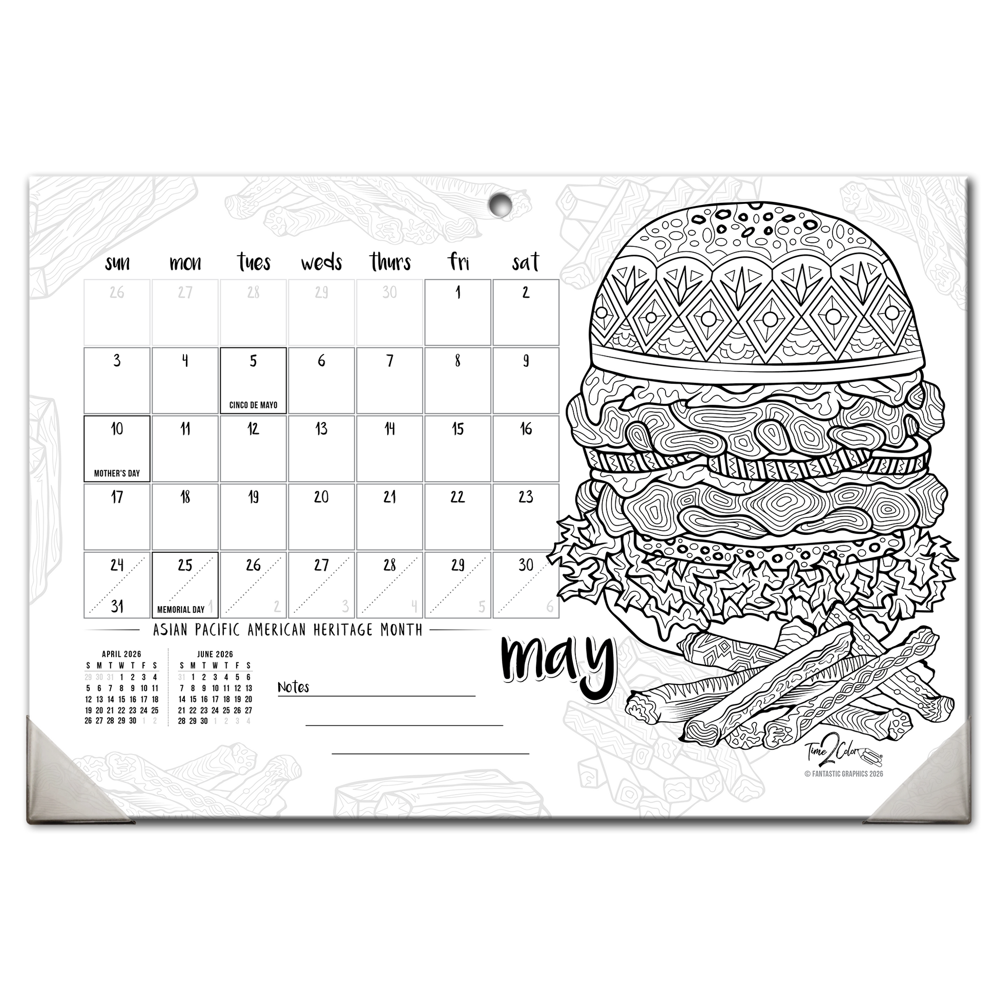 2026 Favorite Foods Home Edition Desk Blotter/Wall Coloring Calendar (19" x 13")