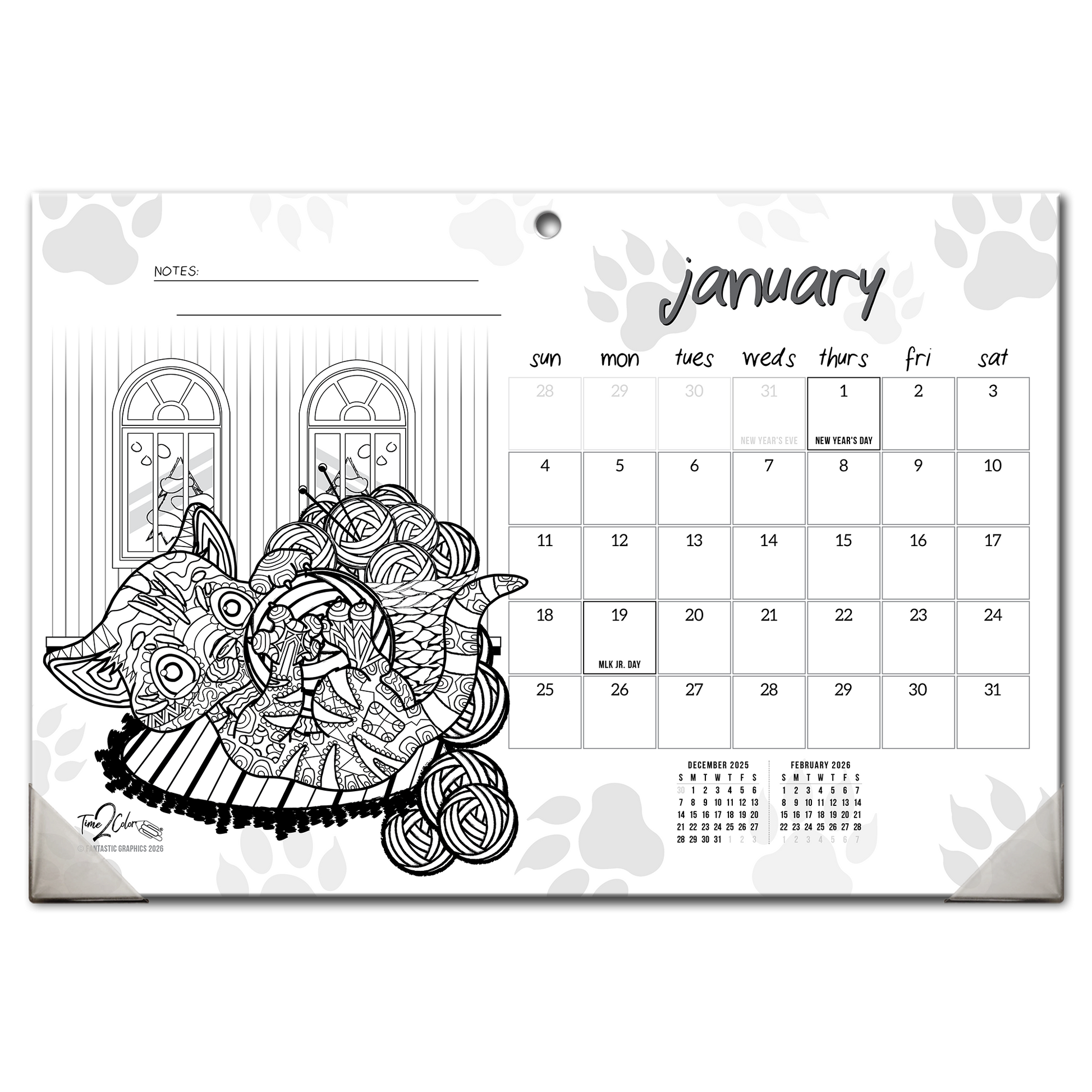 2026 Furry Friends Home Edition Desk Blotter/Wall Coloring Calendar (19" x 13")