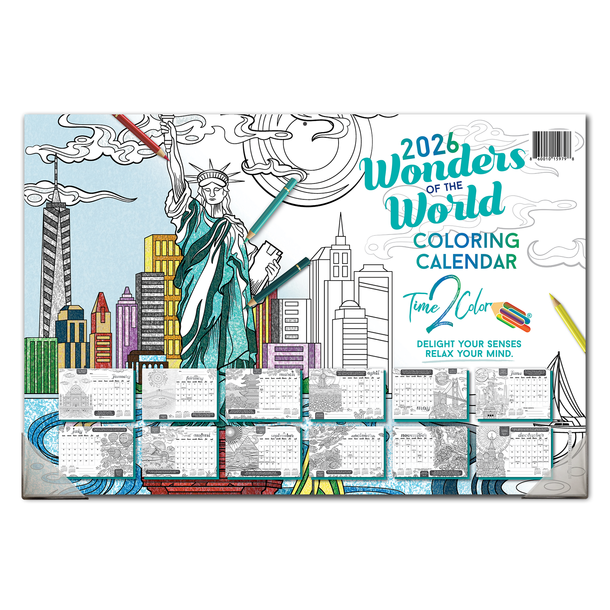 Travel the world with our Wonders of the World Theme Coloring Calendar. Visit exciting places every month like Holland, Egypt, Japan and more! Our beautiful illustrations will take you to some of the most spectacular places and events in the world.