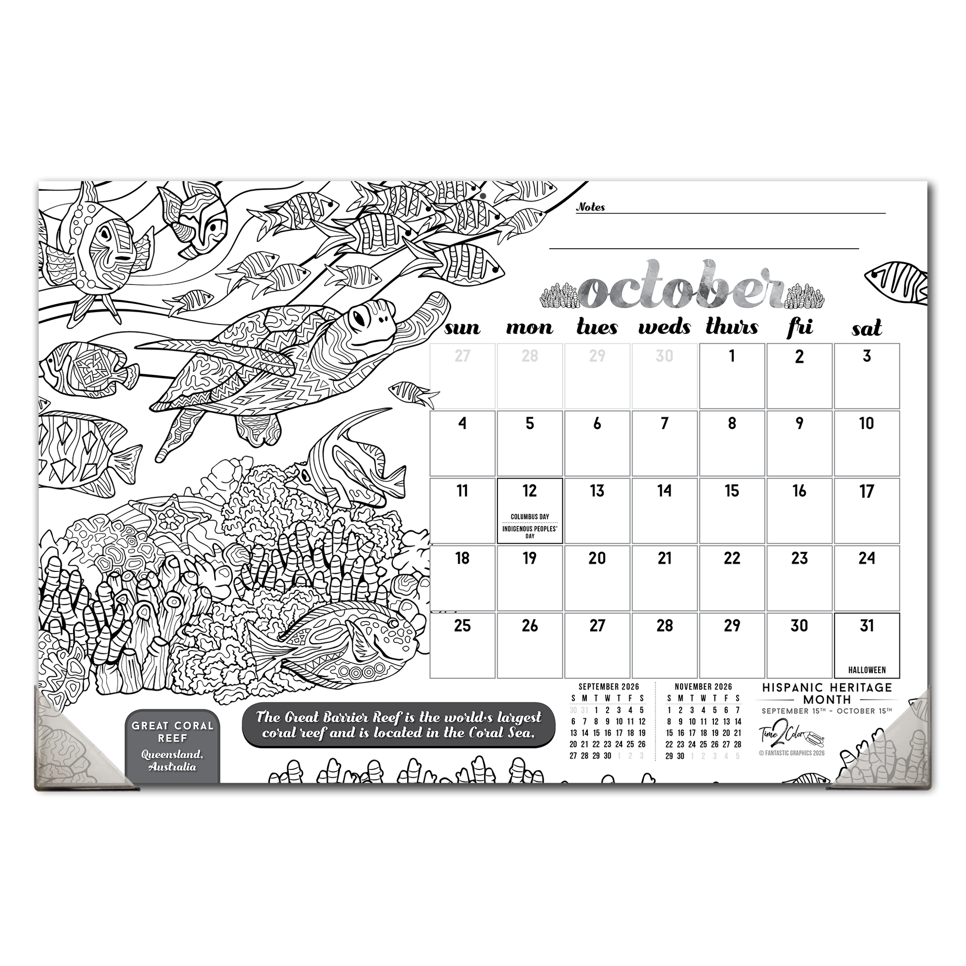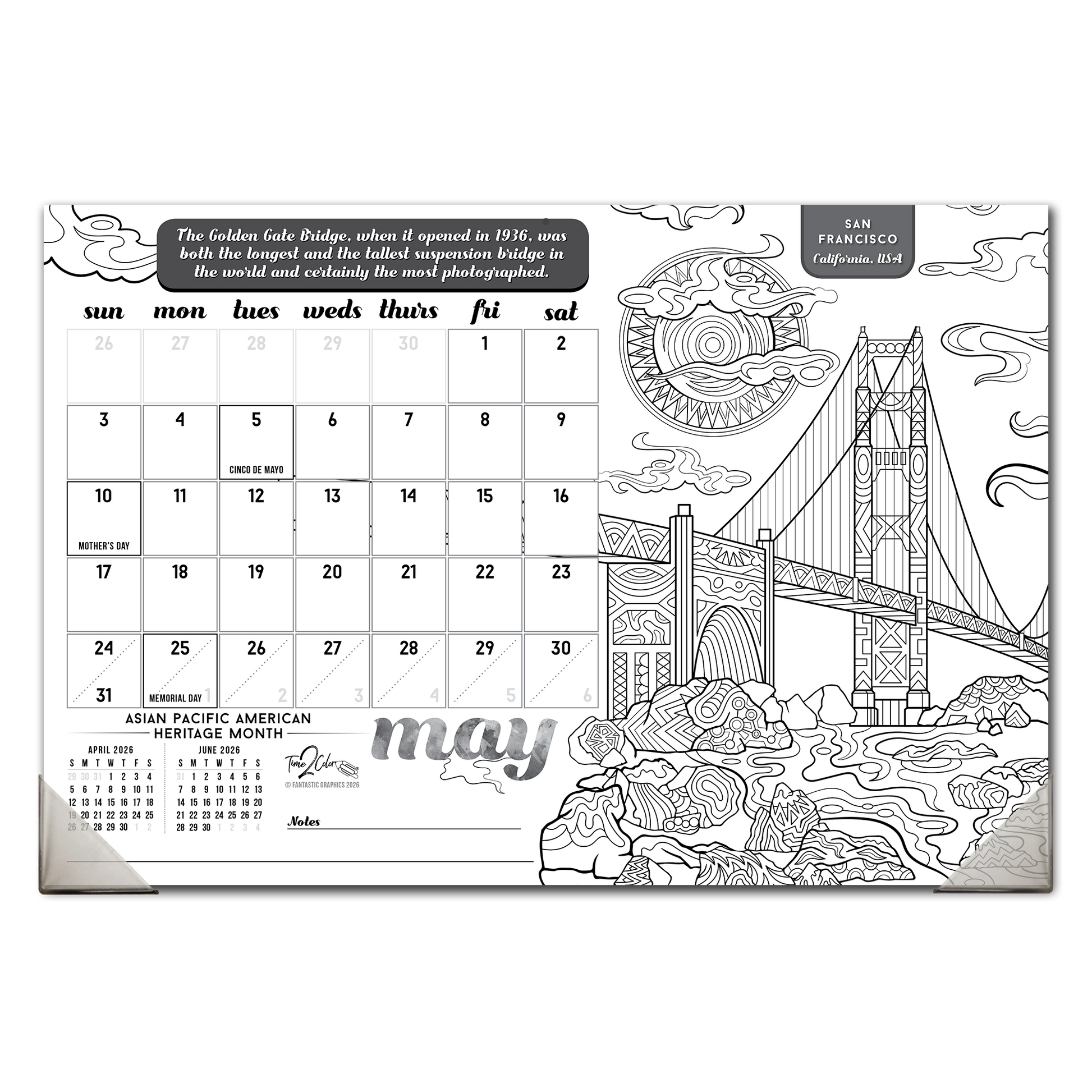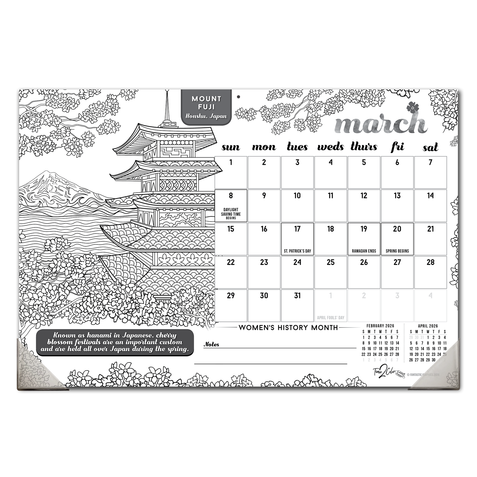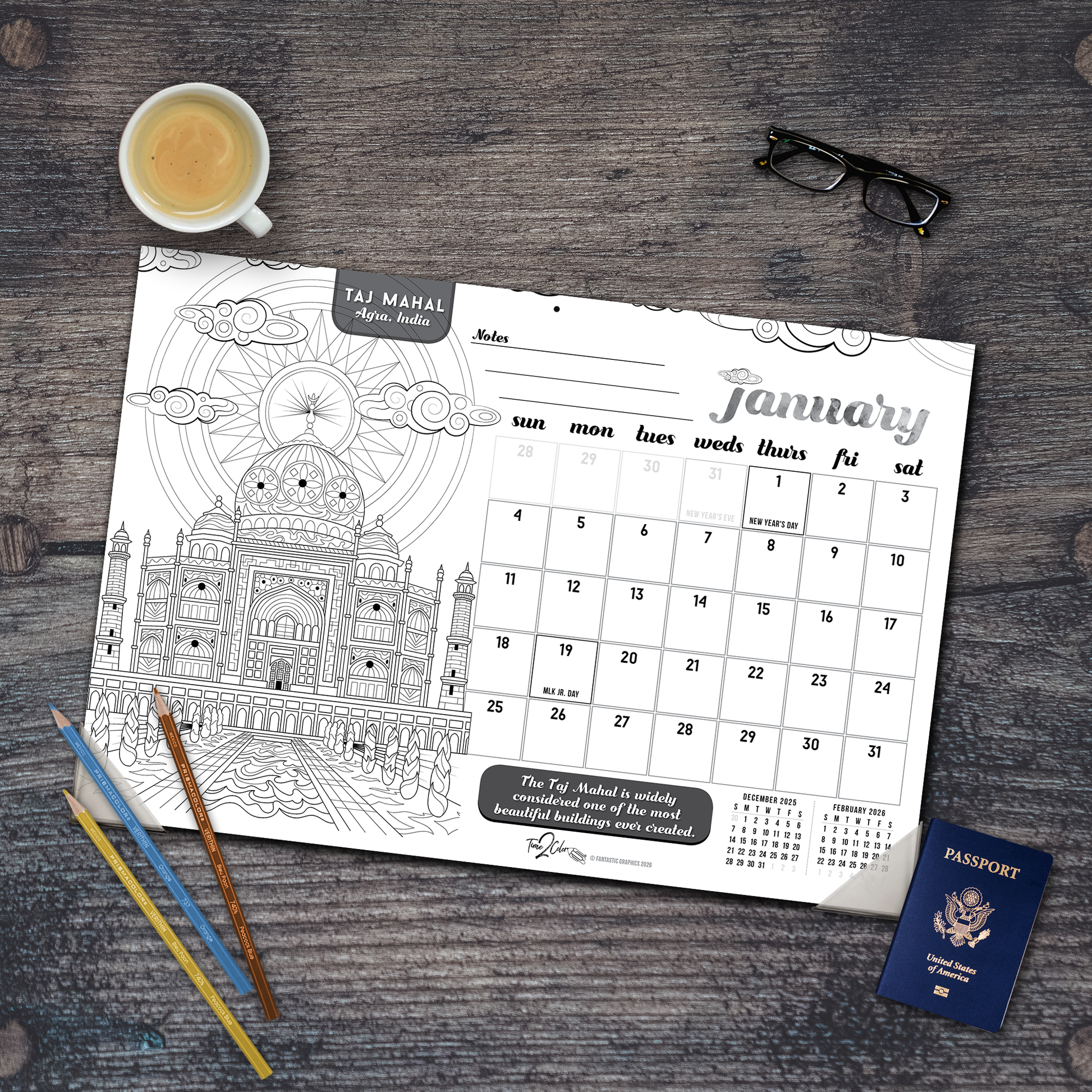 2026 Wonders Of The World Home Edition Desk Blotter/Wall Coloring Calendar (19" x 13")
